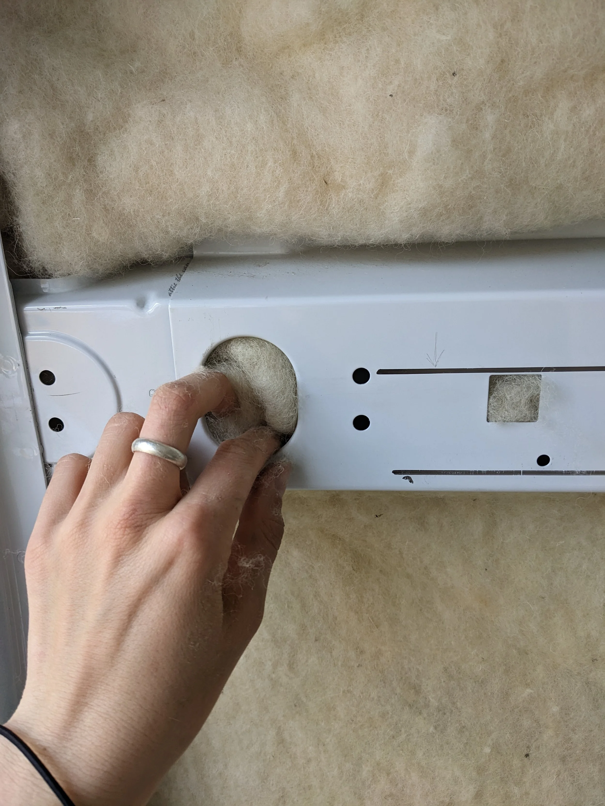 Tip: We found it better to fit the larger areas first before pulling batts apart to create “puffs” for the small crevices as we naturally created these when installing the wool in the larger areas. (In contrast, Havelock wool suggests making the puffs first in some of their videos).